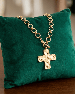 Faith Scarf Chain & Gold Enamle Cross Necklace Wine-W