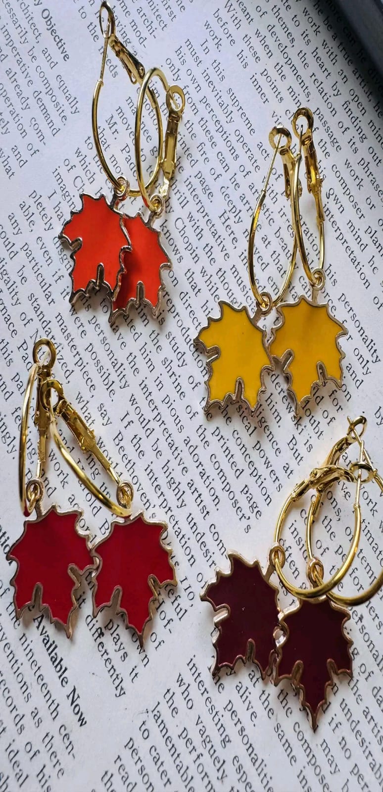 Elegant and lightweight, these 18K gold plated hoop earrings feature assorted fall leaves with a luxe finish. Made from surgical quality steel, they’re hypoallergenic and perfect for sensitive ears—an effortless touch of everyday glam.