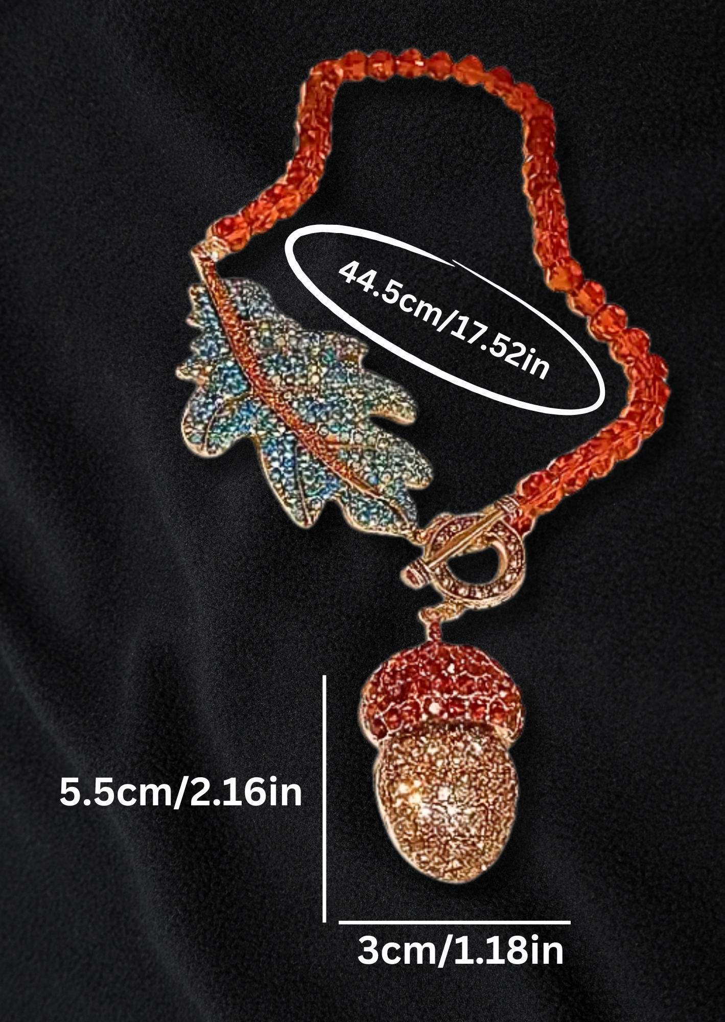 Gracefully designed with a vintage touch, the Fall Aurora Leaf Beaded Statement Necklace showcases a shimmering rhinestone leaf pendant on a radiant 18K gold-plated base. It is a statement piece perfect for elevating your party and banquet looks with timeless elegance.