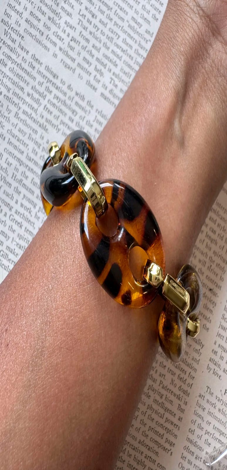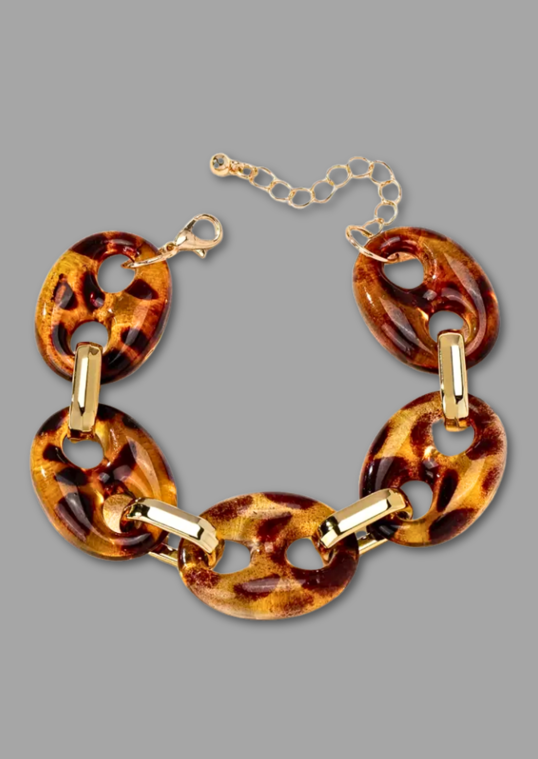 Unleash your bold side with the Leopard Print Boho Bracelet, featuring a captivating leopard print paired with rich amber-toned links. Designed in a boho-meets style, this bracelet is adorned with golden-toned accents that add a touch of wild charm. Lightweight yet eye-catching, it's perfect for elevating both your everyday outfits and party looks. A must-have accessory for the free-spirited fashion lover.