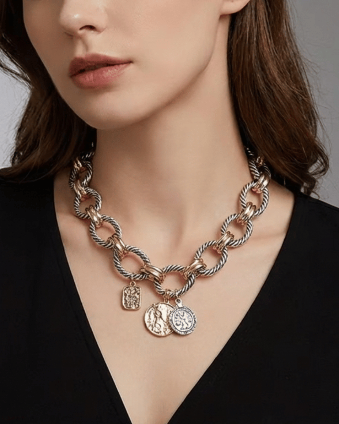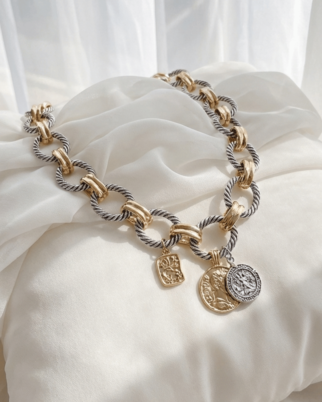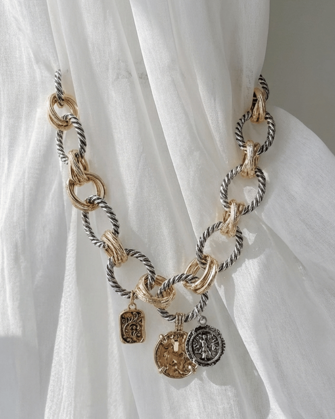 Elevate your everyday style with the Mixed Alloy Duo Toned Oval Necklace, designed to make a subtle yet striking statement. Featuring three elegant oval charms, two in radiant gold tones and one in sleek silver, this necklace offers a perfectly balanced duo-toned look. Crafted from high-quality mixed alloy, it ensures durability, comfort, and a long-lasting polished finish. Ideal for layering or wearing solo, this versatile piece adds modern sophistication to any outfit.
