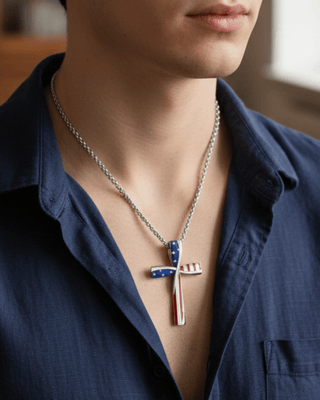 Independence Day Cross Faith Necklace Silver-W