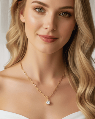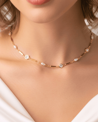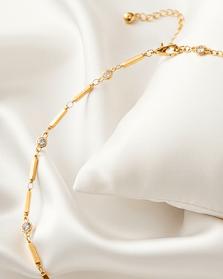 Pre-Order Zirconia Link Bar Gold Chain Necklace-W