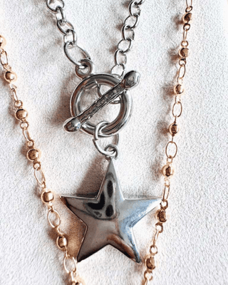 Gold & Silver Toggle Clasp Hammered Star Necklaces-W