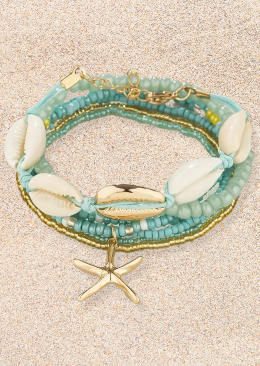 Dive into coastal charm with the Ocean Blue Beaded Shell Bracelets (Stack of 7)! This 7-piece set features boho-style rice beads, acrylic shell and starfish pendants—perfect for teen girls, beach vacations, festivals, or daily wear. A thoughtful gift for friends and a must-have summer accessory!