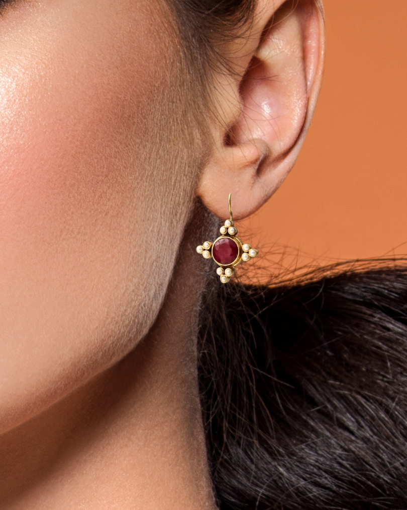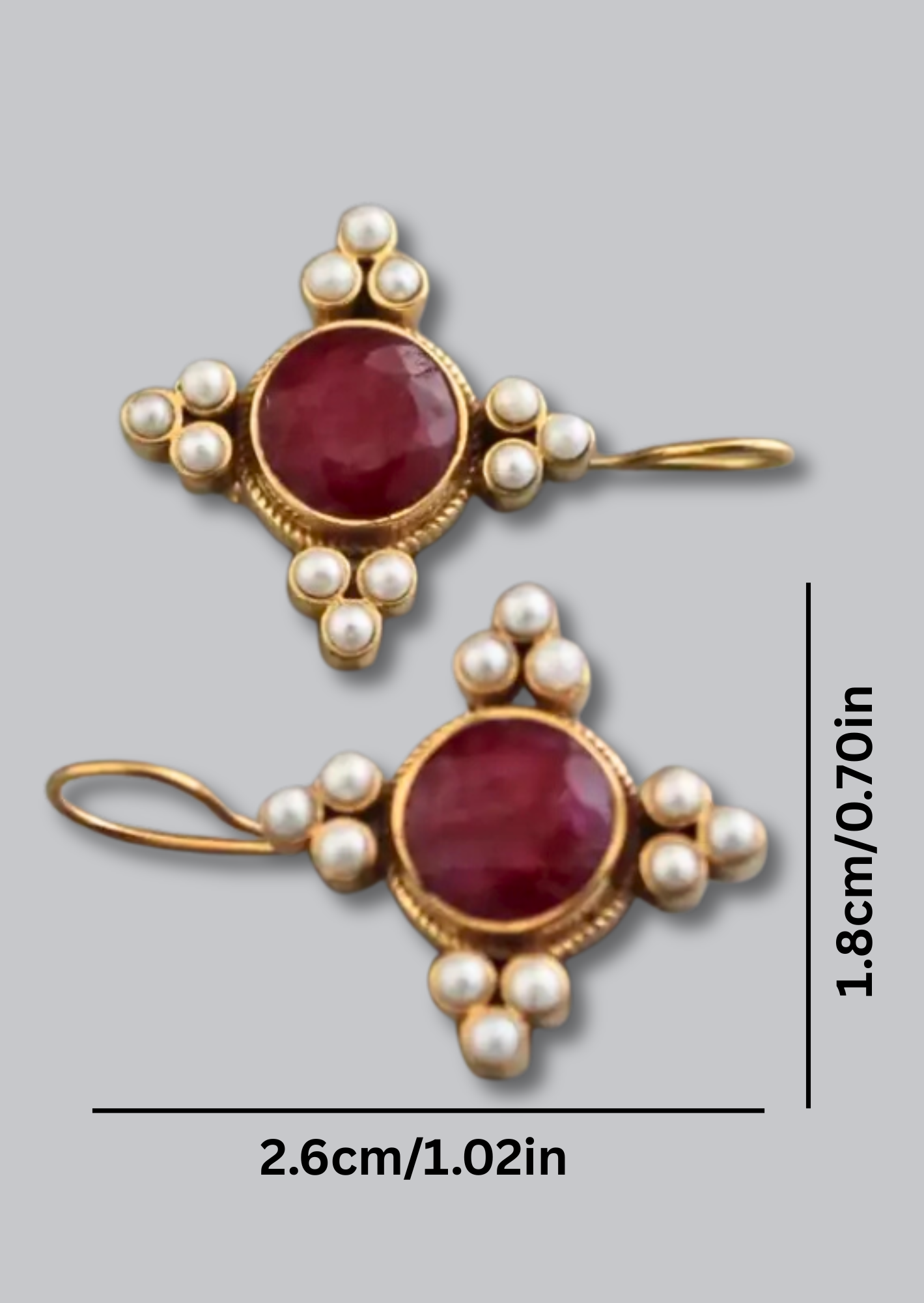 Bohemian Crystal & Pearl Dangle Earrings(Red)-W