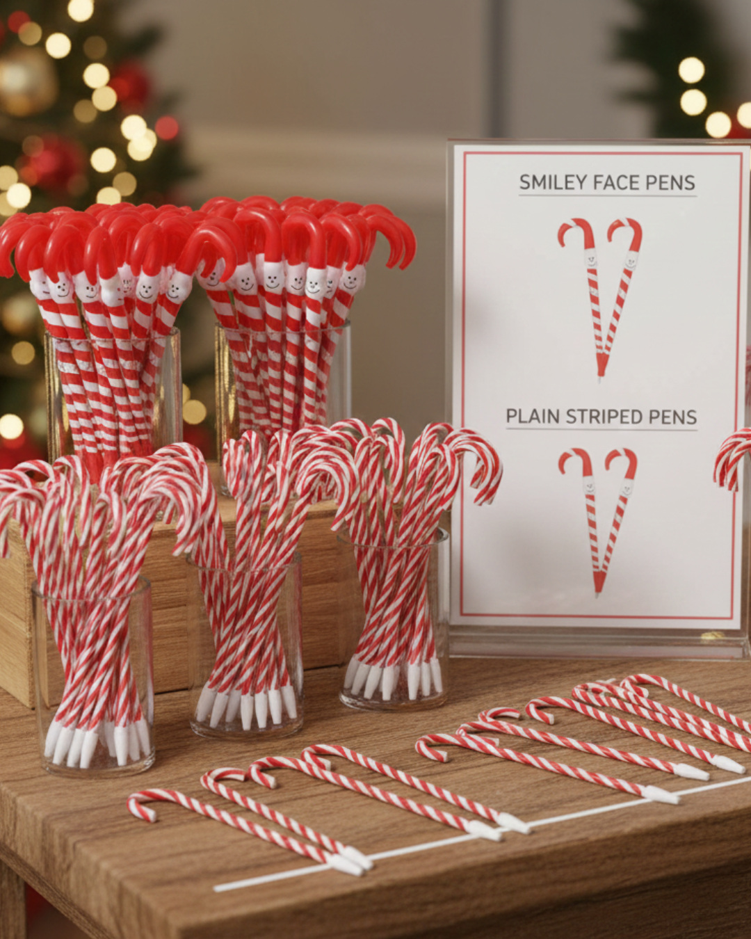 Bring festive fun to your writing with the Christmas Candy Cane Ballpoint Pens Set! —perfect for holiday-themed events, classroom gifts, and party favors. Each pen is crafted from lightweight plastic, equipped with black ink and a click-off cap for convenient everyday use. With a medium point and smooth writing experience, these cheerful pens are both functional and fun, making your holiday season extra sweet and stylish.