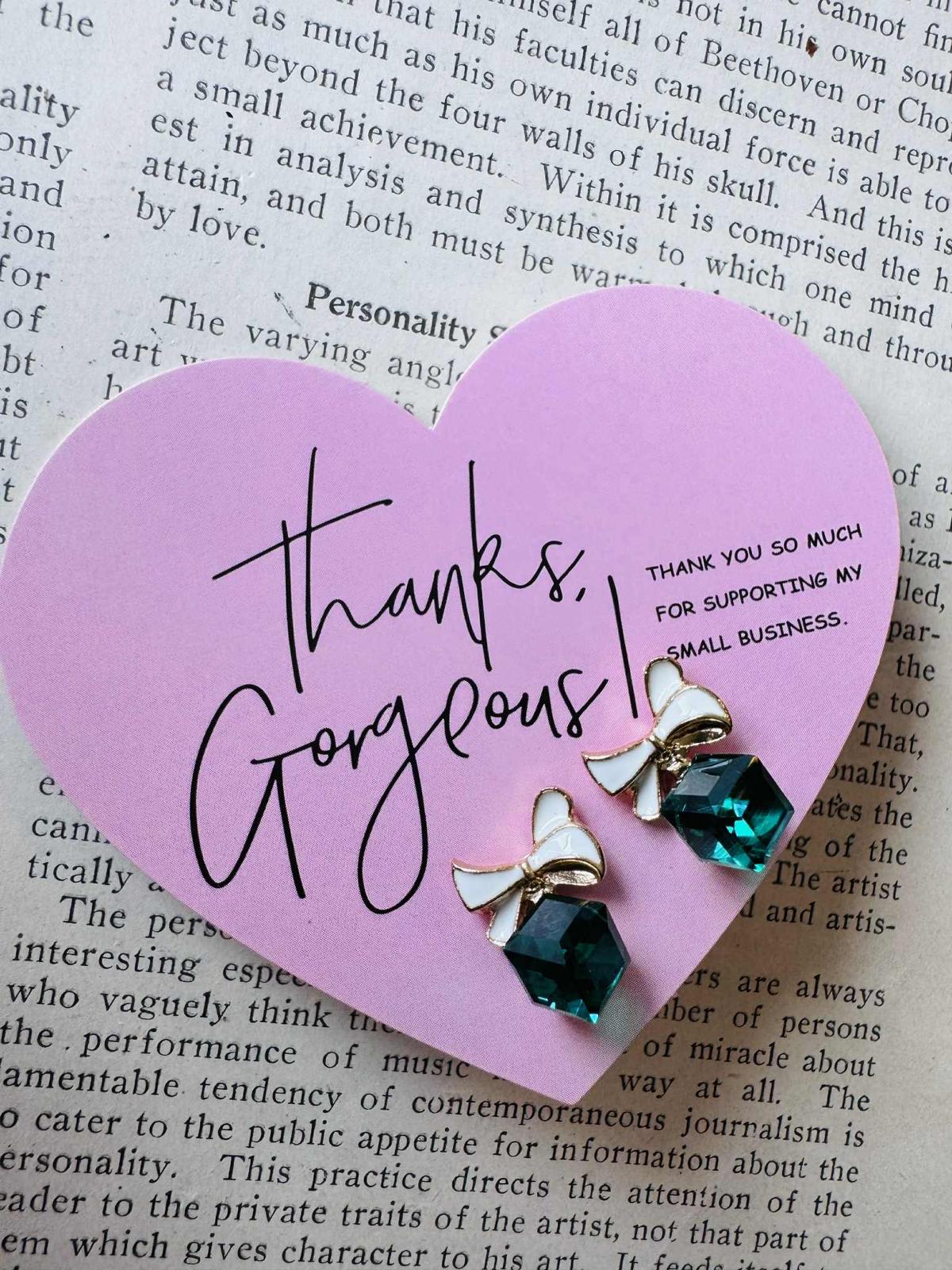 Tie your look together with a bow of brilliance. Delicate yet dazzling, these Emerald Gift box green crystal studs with shiny bow Earrings blend timeless charm with modern elegance. Featuring a glossy white enamel bow with golden accents, they gracefully hold a deep emerald green crystal that shimmers with every movement. Perfect for elevating both everyday chic and evening glam, these earrings are a must have statement of style. The perfect gift for her, or for yourself.