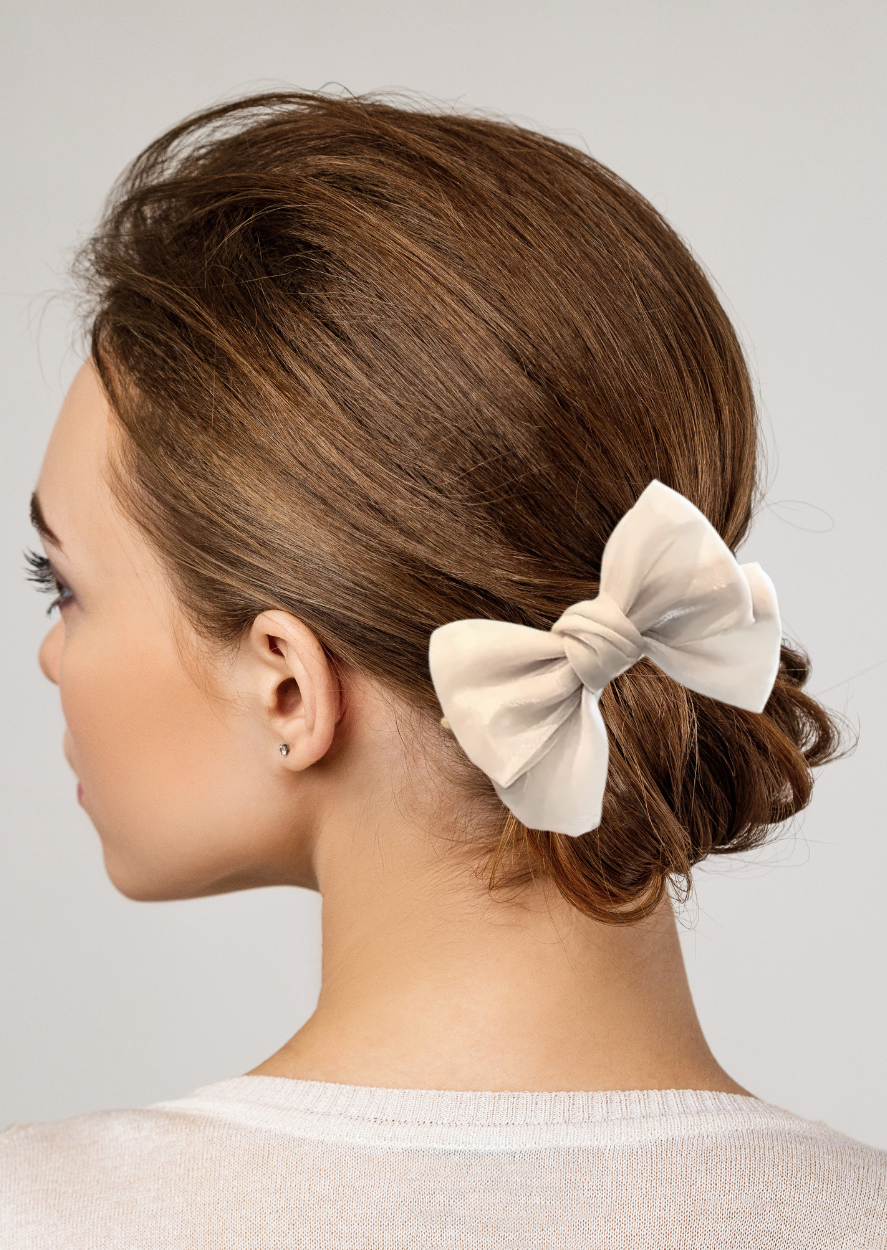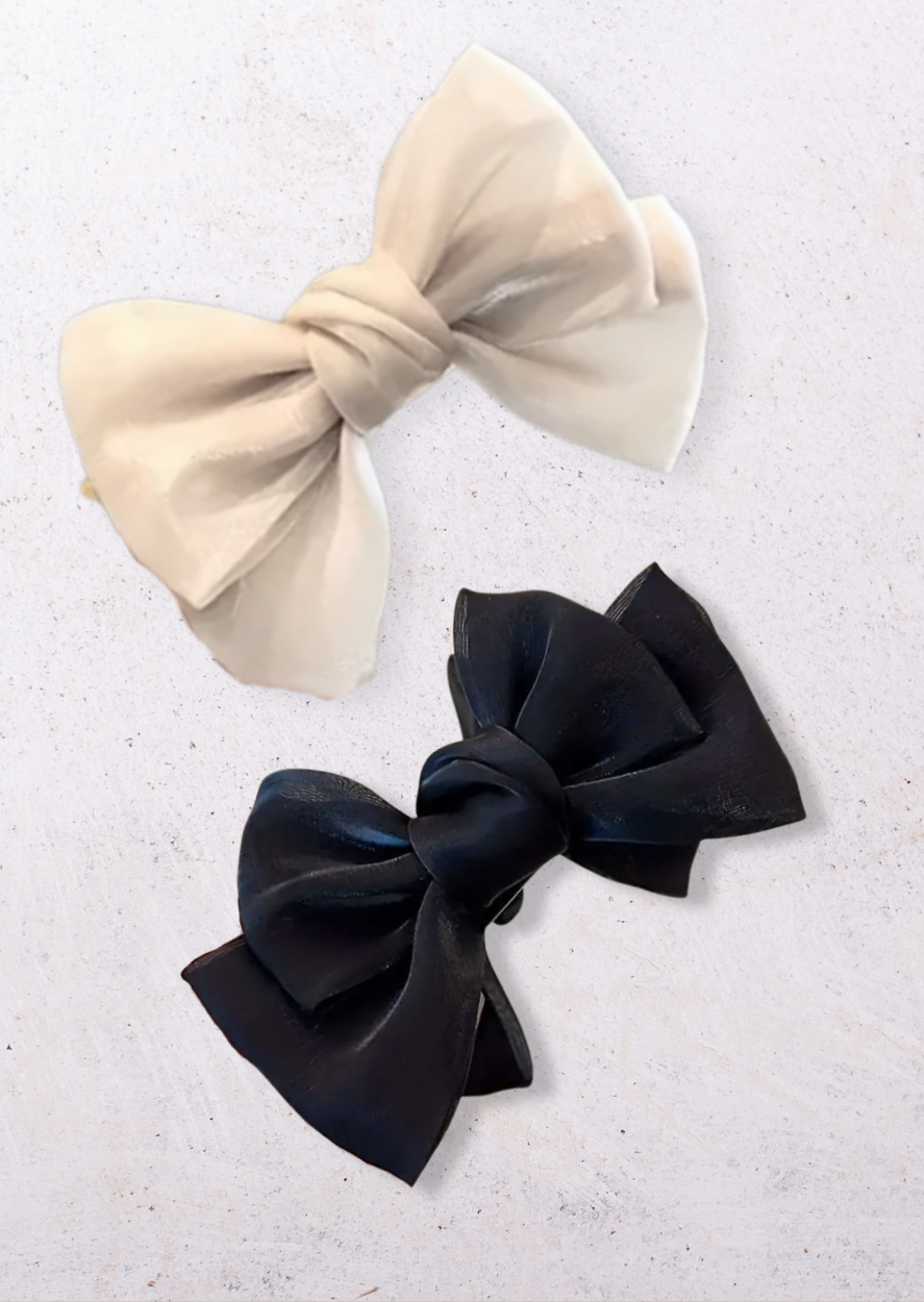 Elevate your hairstyle with this elegant Bow Hair Grabber Set featuring two chic colors: black and champagne. Made from beautiful shiny fabric, each clip is designed with stylish bows on both sides for a refined, feminine touch. These large, non-slip claw clips are perfect for ponytails, occasion wear, and daily use—combining function with flair.