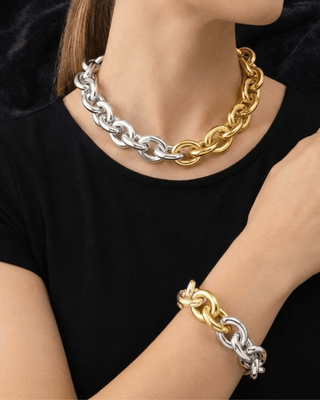 Dual Tone Chain Link Necklace & Bracelet RTS-W