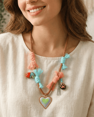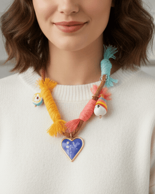 Easter Colorful Boho Heart Charm Statement Necklace(Blue)-W