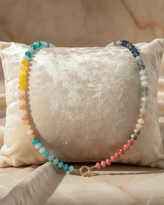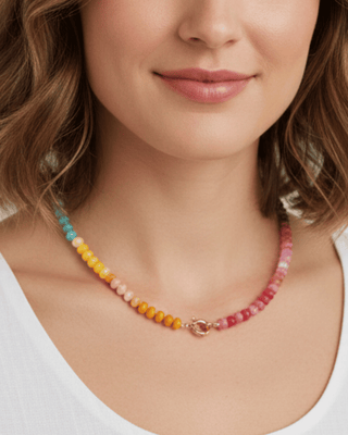 Easter Multicolor Pastel Beaded Glass Necklace(SPRING1)-W