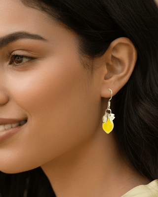 Lime with Flower & Leaf Charm Earrings-W