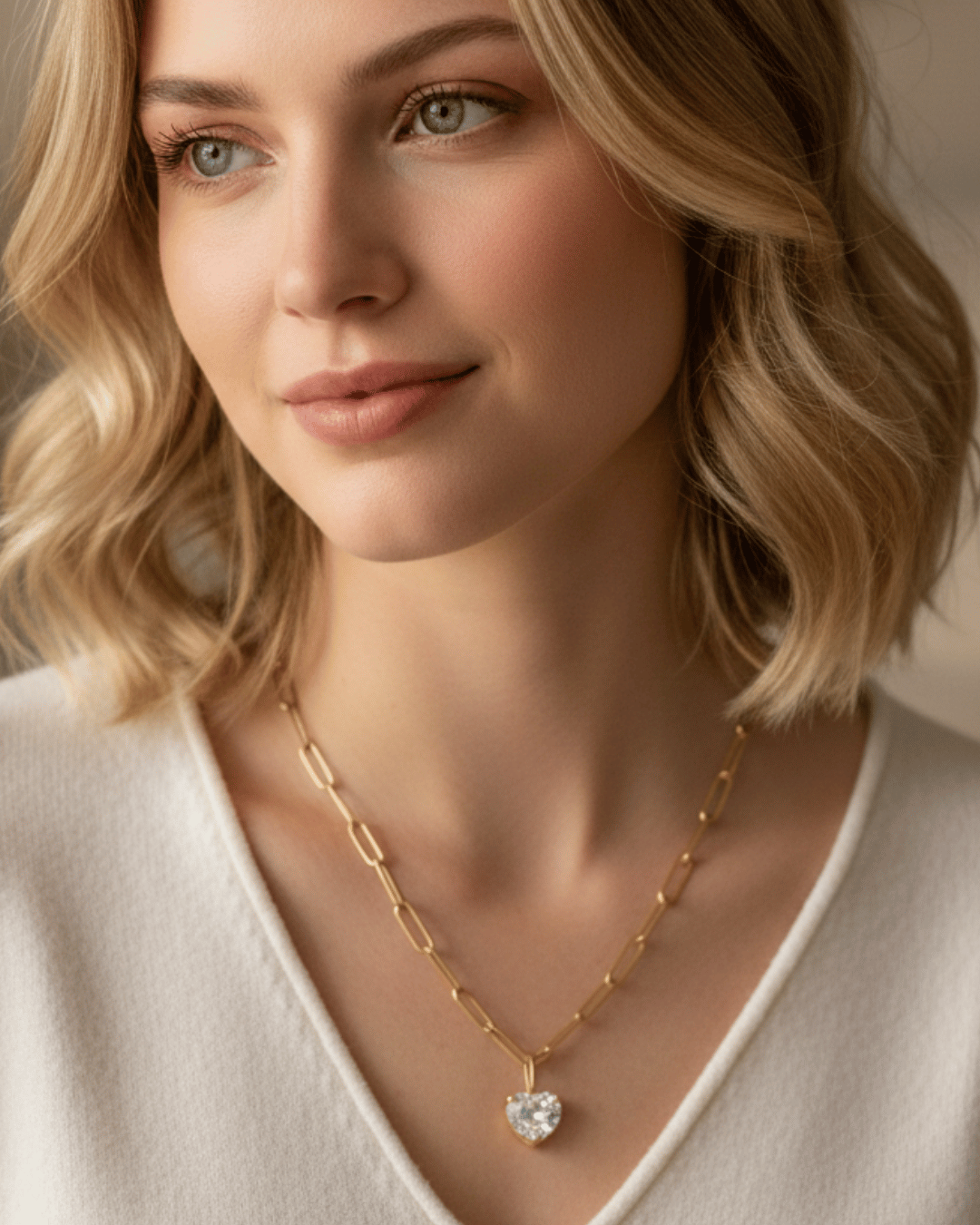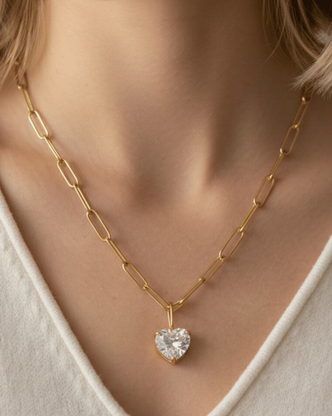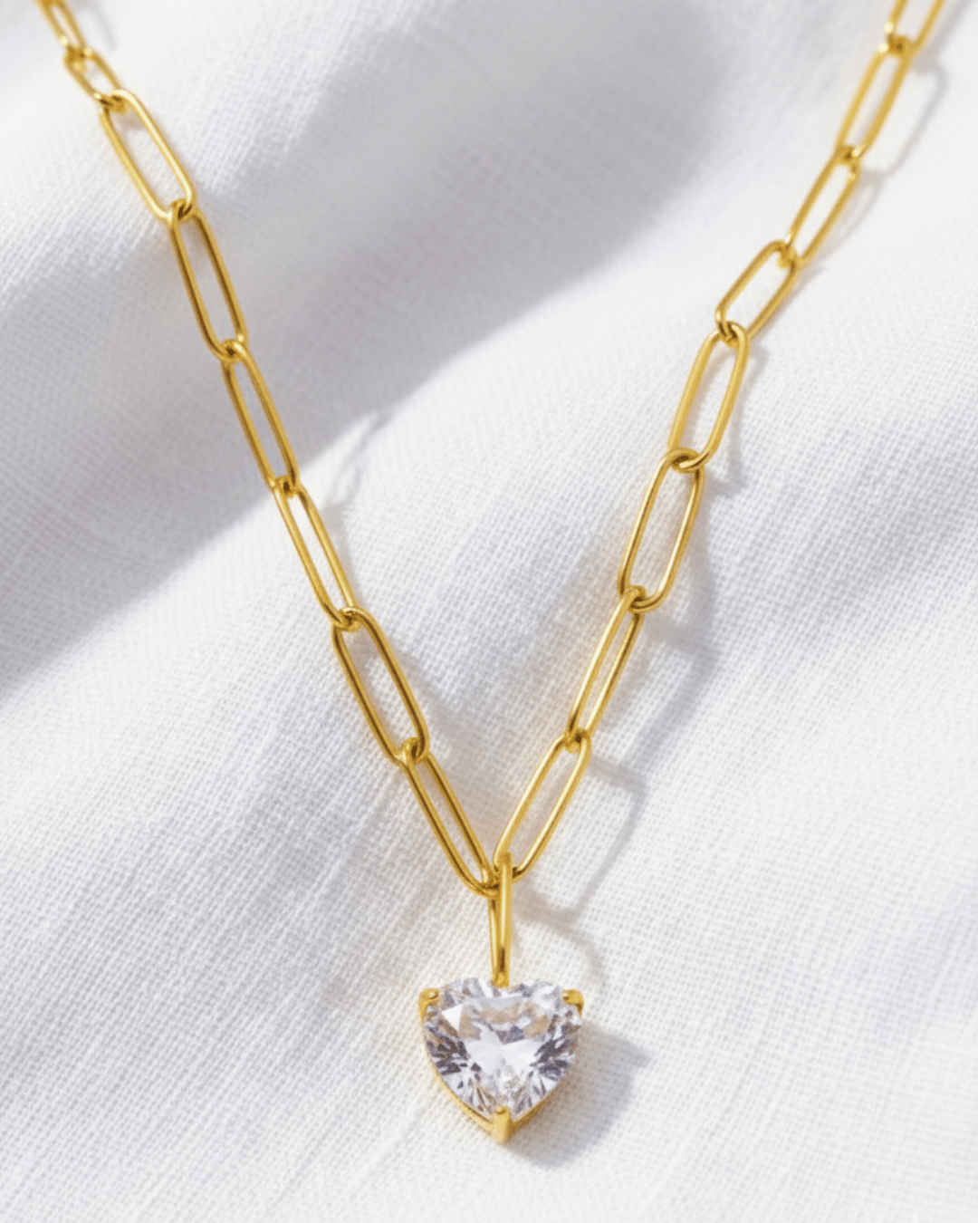 Zirconia Heart Pendant Paperclip Gold Necklace-W RTS