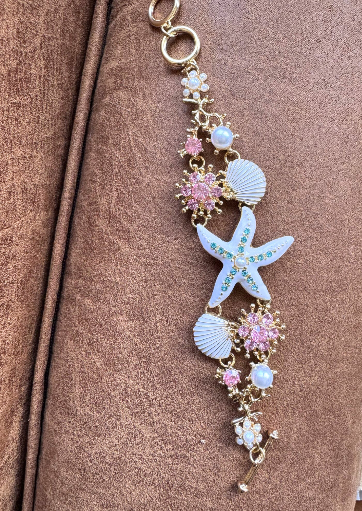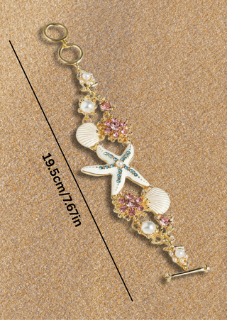 Add a touch of beachside magic to your outfit with the Starfish-Seashell Spark Bracelet. Featuring golden-tone zinc alloy, sparkling rhinestones, and charming starfish and seashell accents, this boho-style accessory is perfect for vacations, beach days, or casual wear. It’s your go-to piece for bringing seaside vibes wherever you go!